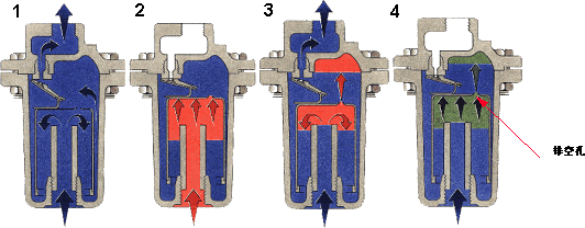 1.起機(jī)時(shí),密封囊是冷的,閥門(mén)完全打開(kāi),冷的空氣和冷凝水由疏水閥排出。 |