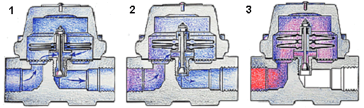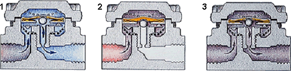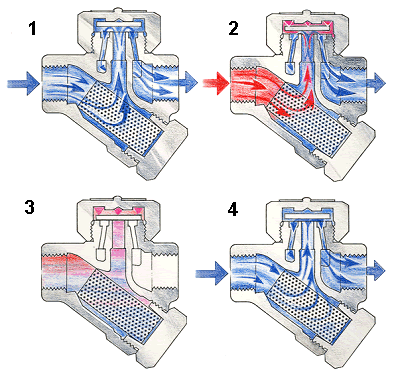 圖3 熱靜力蒸汽疏水閥-壓力平衡式疏水閥的工作過(guò)程