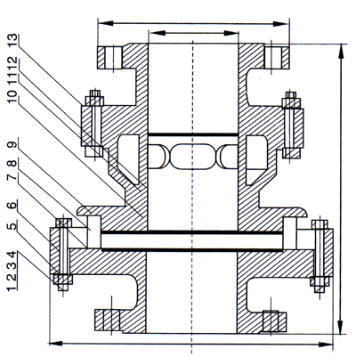 法蘭連接尺寸PN1.0MPa按GB4216.4-84標(biāo)準(zhǔn),PN1.6MPa按GB4213.5-84標(biāo)準(zhǔn)