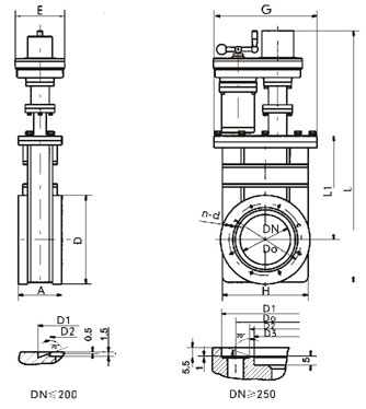 DN | A | H | D | Do | D1 | D2 | D3 | L | L1 | G | E | n-d | 法蘭標(biāo)準(zhǔn) |