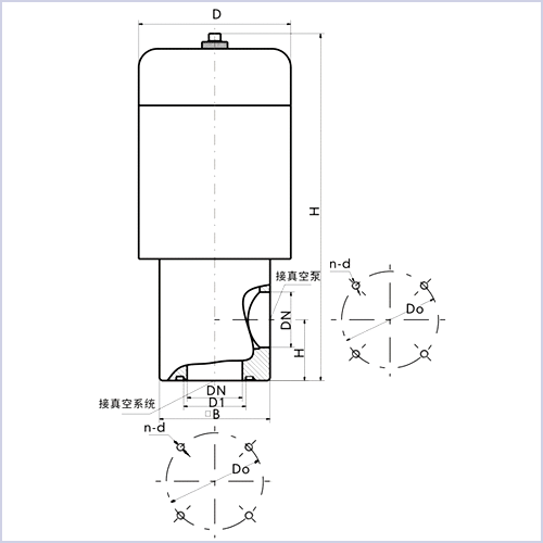DDC-JQ型電磁真空帶充氣閥外形及連接尺寸
