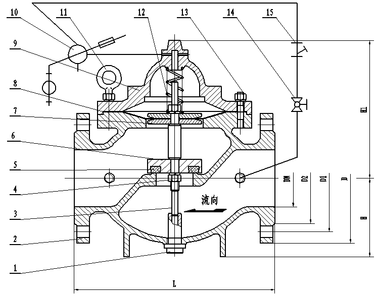 7、水利控制閥主閥體上的箭頭方向必須與管路系統(tǒng)流向一致。