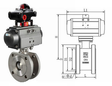 氣動對夾式球閥球芯通道形狀有V形及O形,具有結(jié)構(gòu)長度短、重量輕、安裝方便、節(jié)省材料等顯著優(yōu)點,適用于安裝位置比較短的場合,維修方便,閥門設(shè)計易拆卸,在閥門一端有螺旋閥蓋,此閥蓋控制閥座與球芯密封及開關(guān)松緊度。